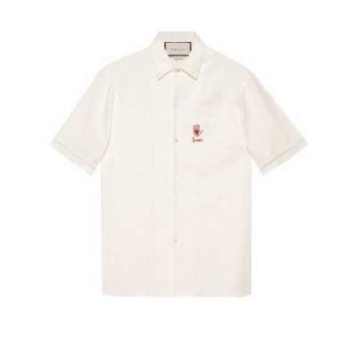 【包邮包税】GUCCI/古驰  古琦男装 男士米白色棉质时尚春夏保龄球衫短袖衬衫 649711 ZAGIS 9799