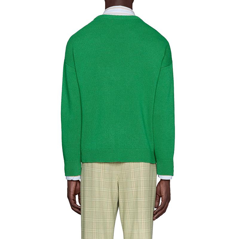 【包稅】GUCCI/古馳21年早秋新款Freya Hartas系列男士綠色羅紋動物印花羊毛毛衣653914XKBYF3129