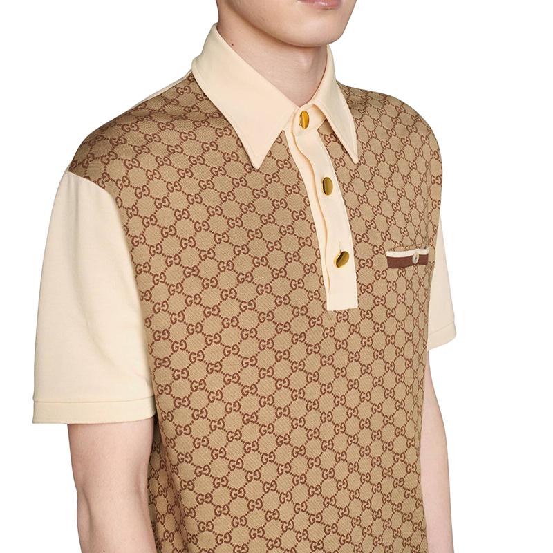 【包税】GUCCI/古驰 21年春夏新款 男士象牙色GG图案棉质真丝平纹针织提花短袖polo衫655435XJDGE2270