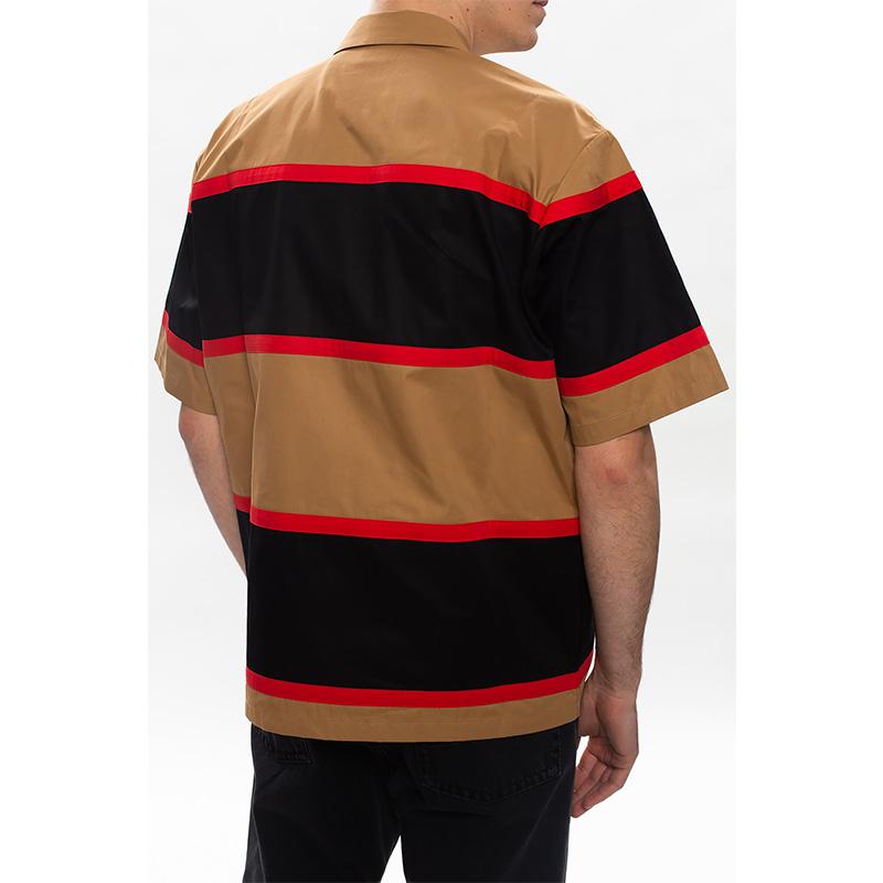 【包郵包稅】BURBERRY/博柏利巴寶莉男裝男士拼色條紋棉質時尚拉鍊方領春夏短袖襯衫80367711