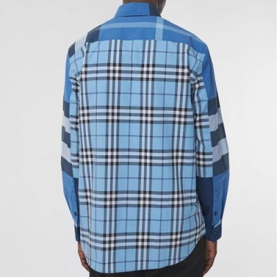 首頁 > 男裝 > 博柏利 > 【包郵包稅】BURBERRY/博柏利巴寶莉男裝男士亮鈷色棉質時尚格紋方領長袖襯衫80386551