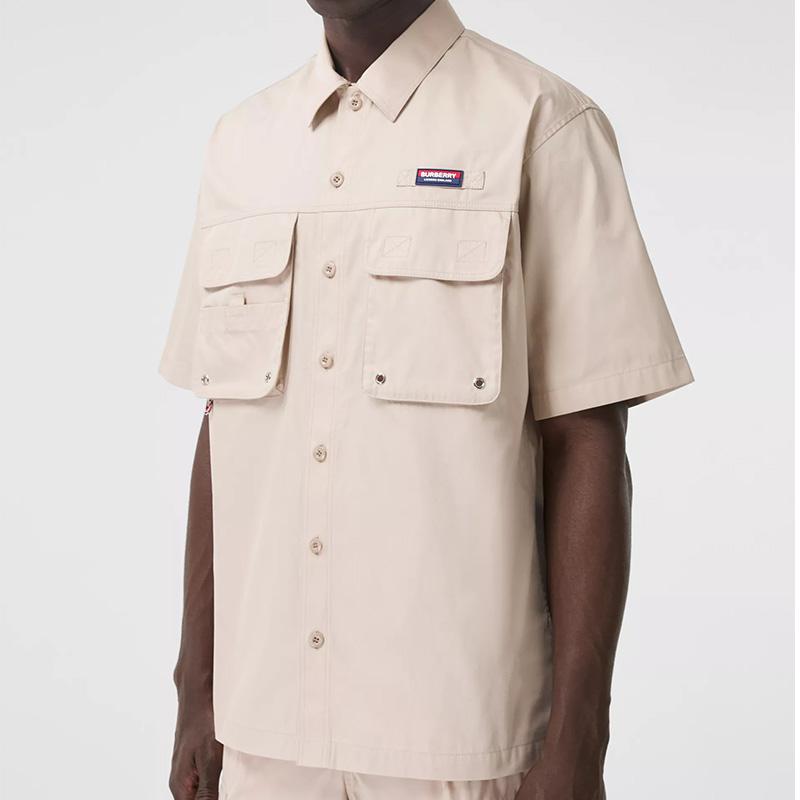 【包邮包税】BURBERRY/博柏利  巴宝莉男装 男士柔黄褐色棉质时尚春夏短袖衬衫 80385151