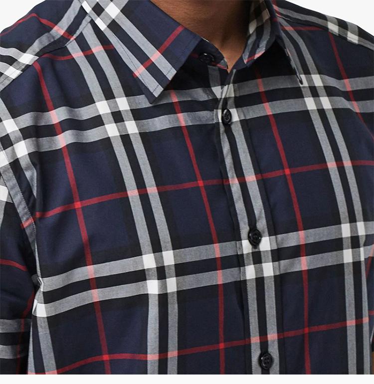 BURBERRY/博柏利男裝服飾21春夏棉質經典格紋翻領襯衣男士短袖襯衫