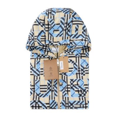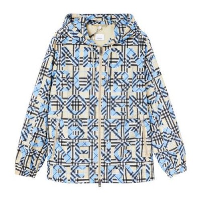 BURBERRY/博柏利男士夾克藍色尼龍徽標拼Vintage格紋連帽外套8038770
