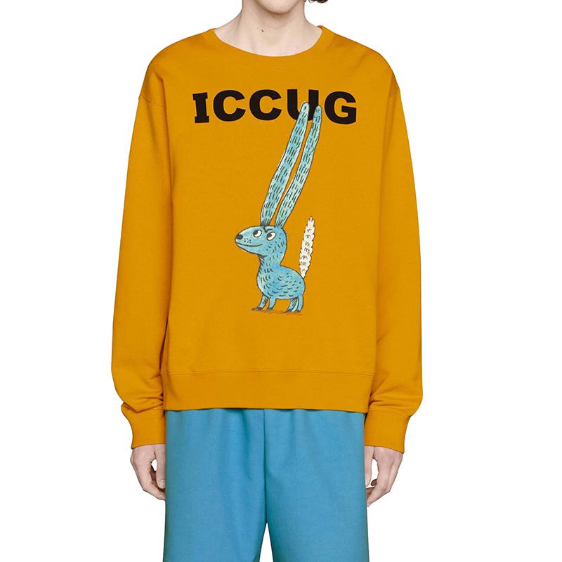 ‎【包稅】GUCCI/古馳21年早秋新款Freya Hartas系列男士黃色棉質動物印花運動衫626990XJDJS7245
