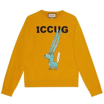 ‎【包税】GUCCI/古驰 21年早秋新款 Freya Hartas系列 男士黄色棉质动物印花运动衫626990XJDJS7245