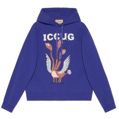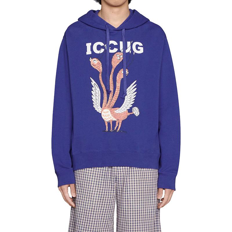【包稅】GUCCI/古馳21年早秋新款Freya Hartas系列男士藍色棉質動物印花衛衣646953XJDJT4120