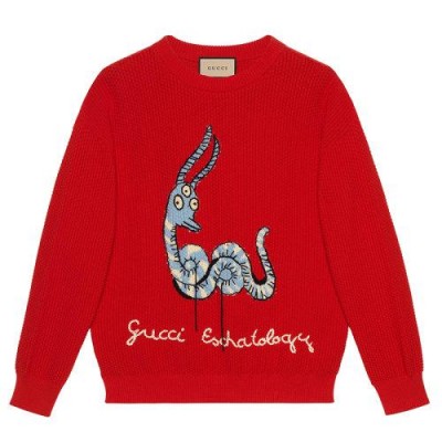 由英国儿童读物插画家弗雷亚·哈塔斯(Freya Hartas)想象,一系列受到神话世界启发的动物角色邀请Overture系列来庆祝讽刺和诗歌。这款绿色羊毛毛衣上的动物与“ Gucci Eschatology”刺绣相关联,Eschatology指的是一种探索人与宇宙最终命运的学说。