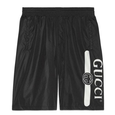 【包稅】GUCCI/古馳21年春夏新款男士黑色防水尼龍Gucci徽標印花短褲627275XHAC31070