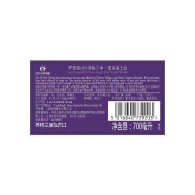 罗曼湖18年苏格兰单一麦芽威士忌700ml
