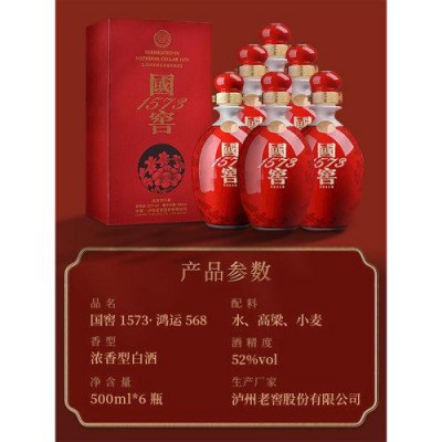 【官方旗舰店】国窖1573 52度500ml*6浓香型白酒鸿运568