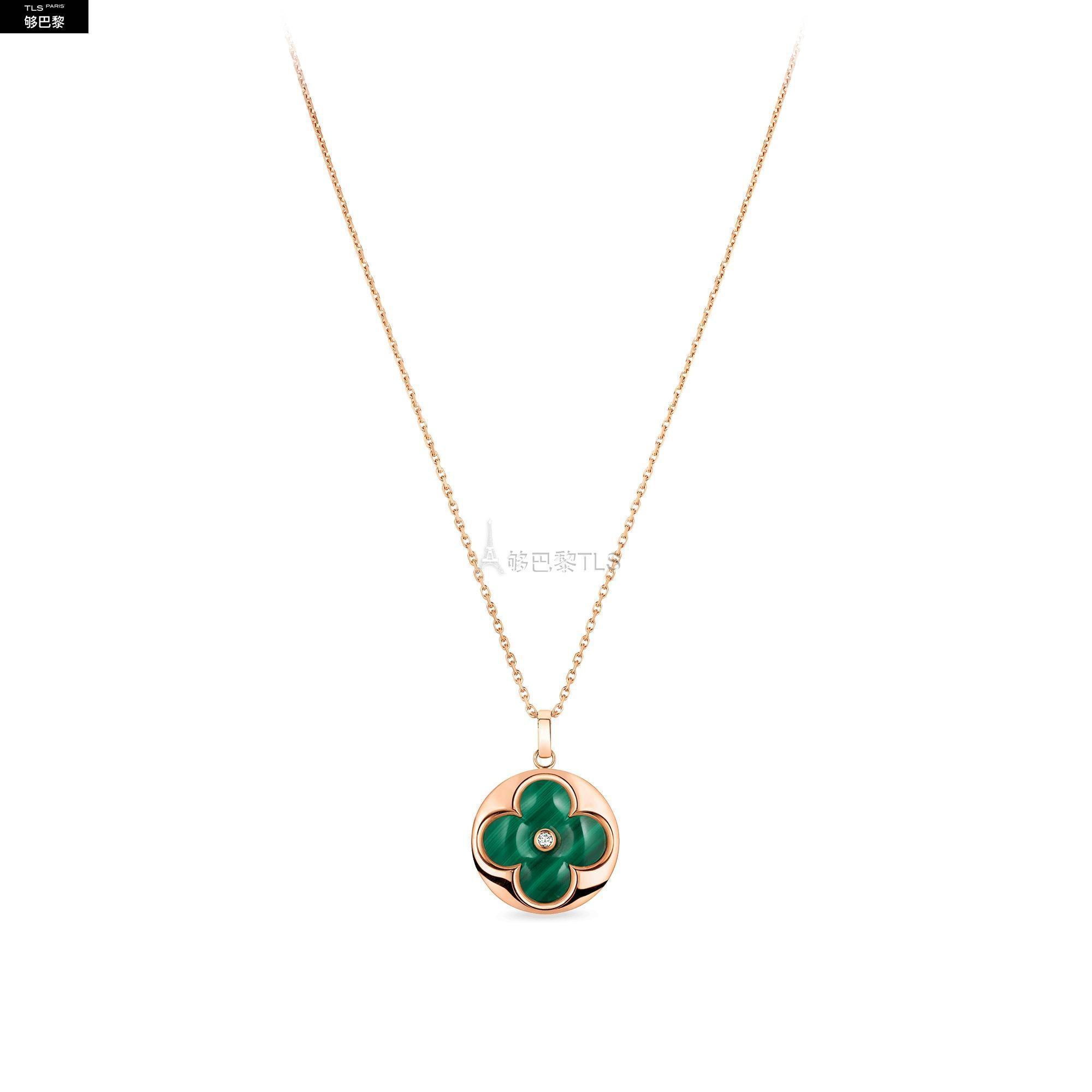 • 【包邮包税】 LV路易威登 21年春夏 女士 项链 COLOR BLOSSOM XL 吊坠,玫瑰金、孔雀石与钻石 Q93657 预定商品1-3周发货