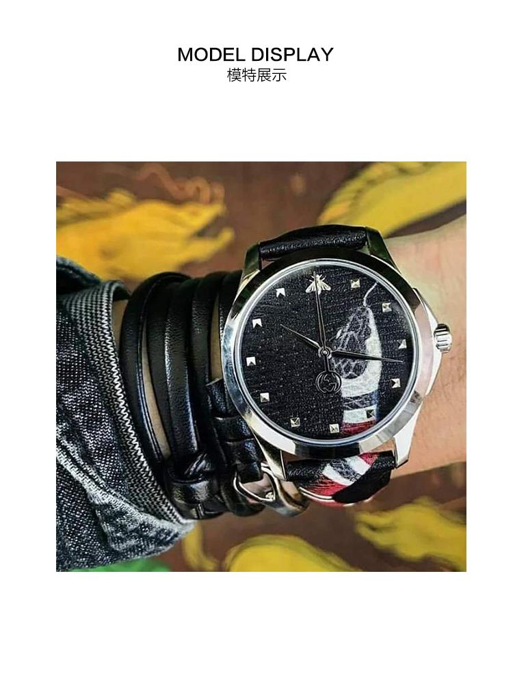 GUCCI/古驰 男女时尚灵蛇黑色真皮中性手表 YA1264007