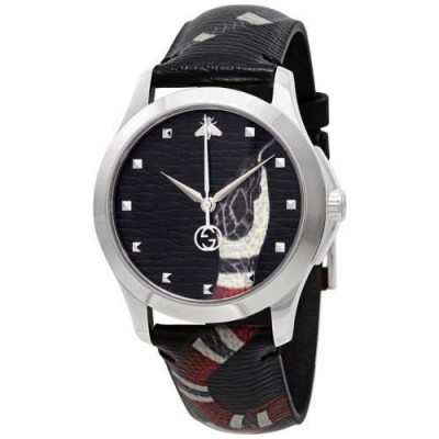 GUCCI/古馳男女時尚靈蛇黑色真皮中性手錶YA1264007