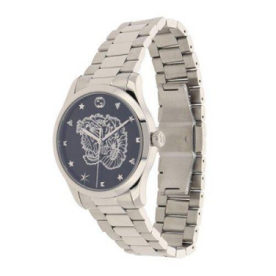 GUCCI/古馳春夏女士虎頭圖案黑色亮光錶盤腕表YA1264125