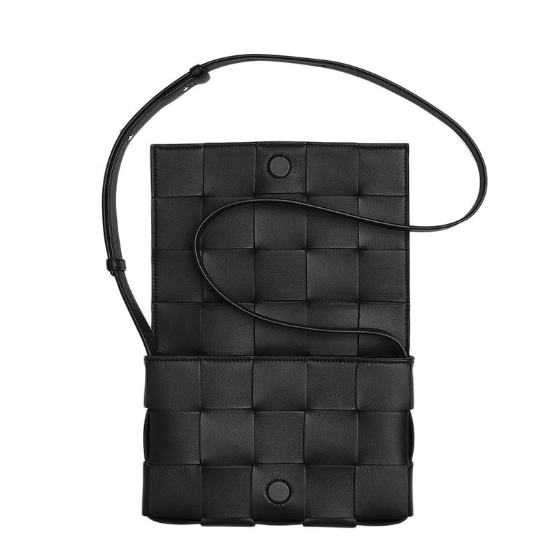 【包稅】Bottega Veneta/葆蝶家經典款CASSETTE系列黑色小羊皮雙面正交編織單肩豆腐包578004VMAY11229