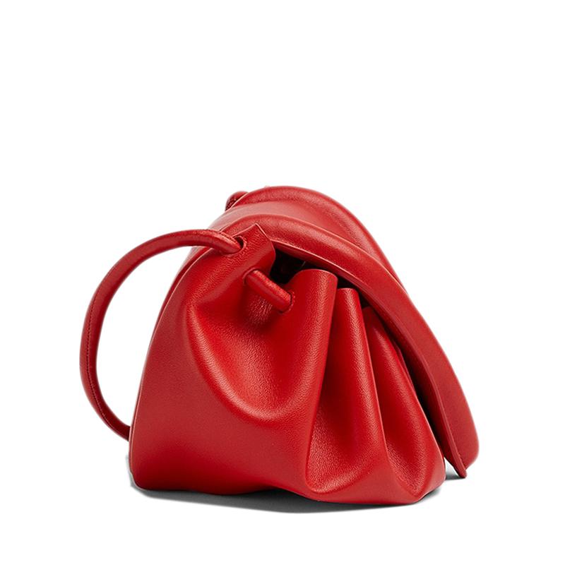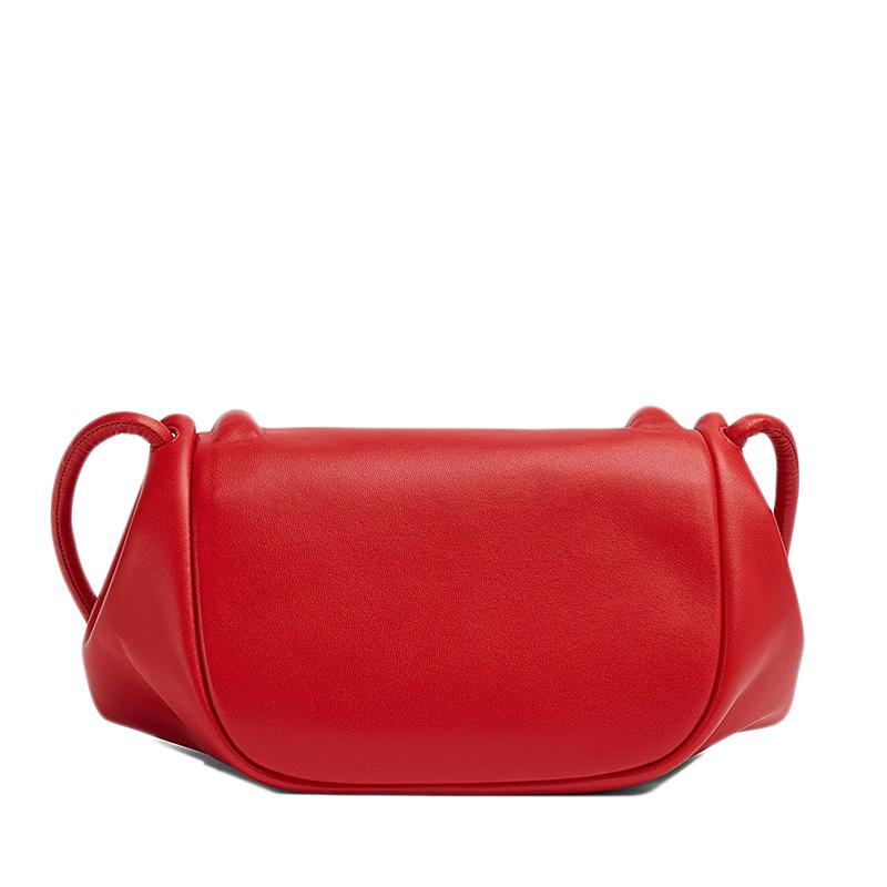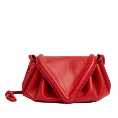 【包稅】Bottega Veneta/葆蝶家21新款BEAK系列女士中號紅色小羊皮三角形翻蓋單肩斜挎手拿包658523VCP306402