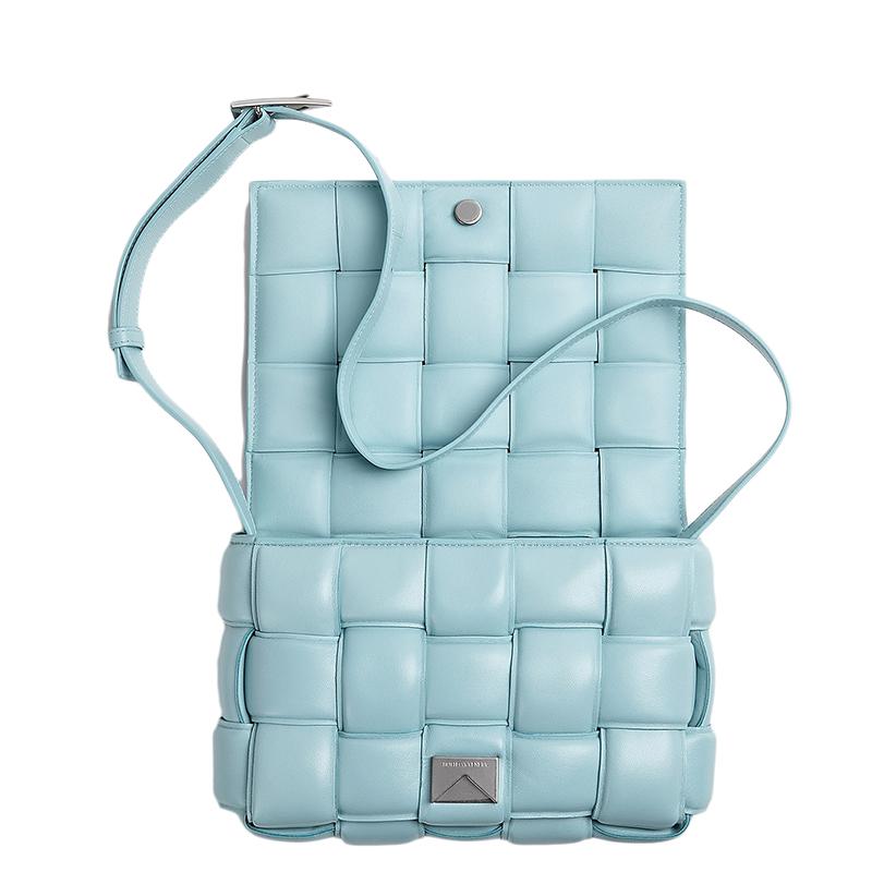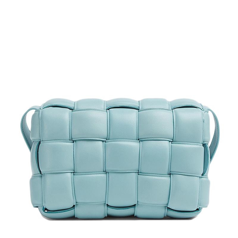 【包稅】Bottega Veneta/葆蝶家21春夏新款CASSETTE PADDED系列女士薄荷綠色小羊皮雙面編織單肩斜挎豆腐包591970VCQR11619
