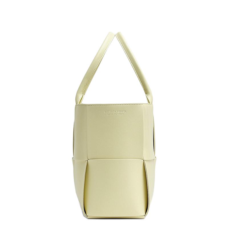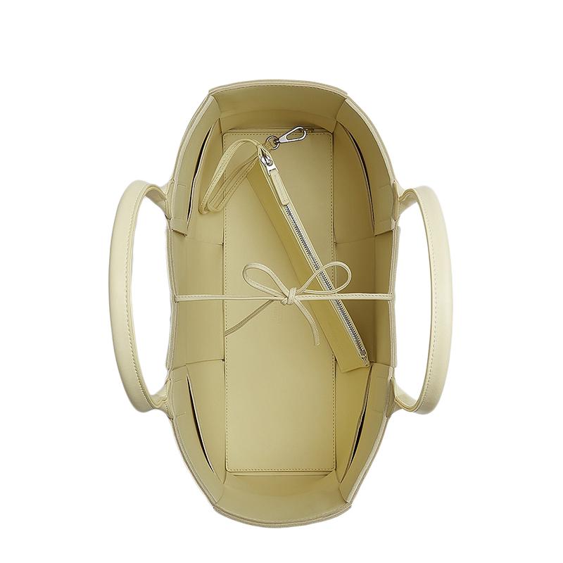 【包稅】Bottega Veneta/葆蝶家21春夏新款ARCO系列女士中號霜淇淋色小羊皮格子編織手提托特包609175VCQC27450