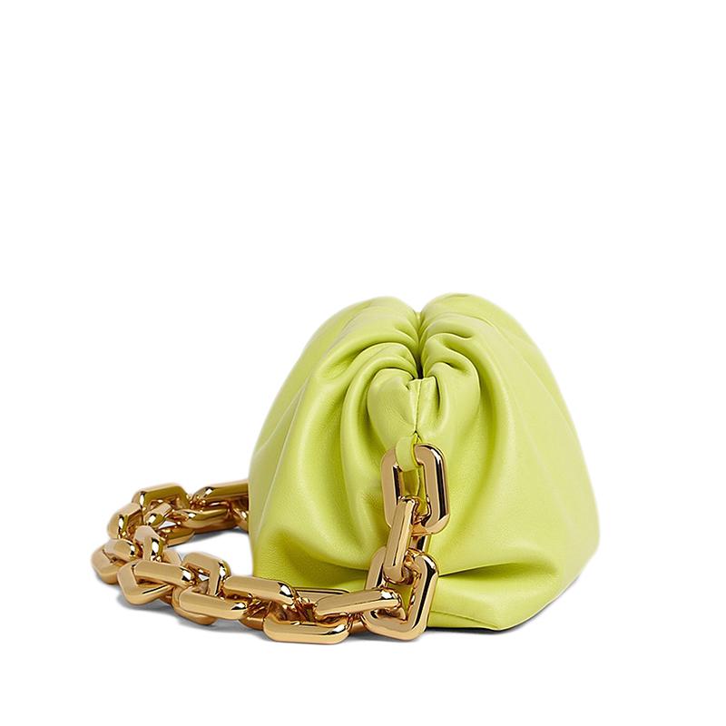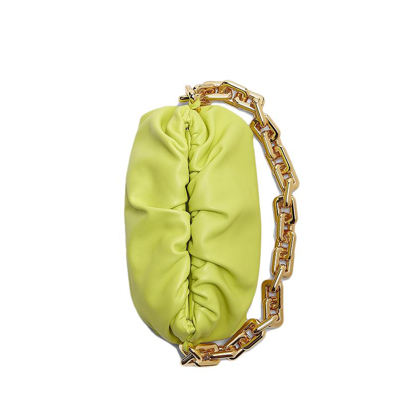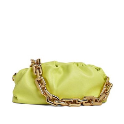 【包税】Bottega Veneta/葆蝶家 21春夏新款CHAIN POUCH系列 女士海草黄色滑面小牛皮金色链条云朵包腋下包单肩包620230VCP403453