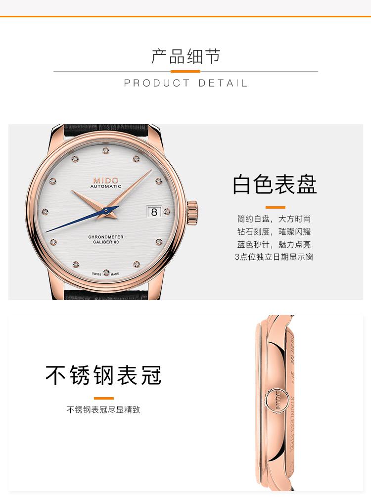 mido/美度 贝伦赛丽系列女士美度 Caliber硅游丝天文台认证自动机械腕表M027.208.36.036.00