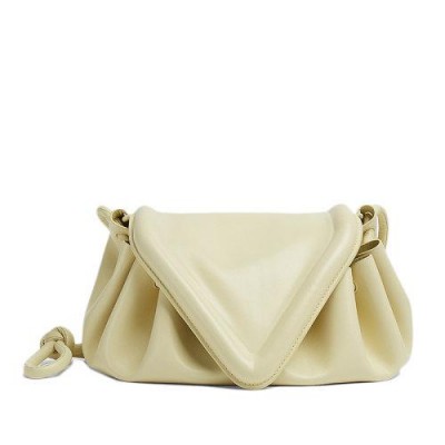 【包稅】Bottega Veneta/葆蝶家21新款BEAK系列女士中號霜淇淋色小羊皮三角形翻蓋單肩斜挎手拿包658523VCP307450