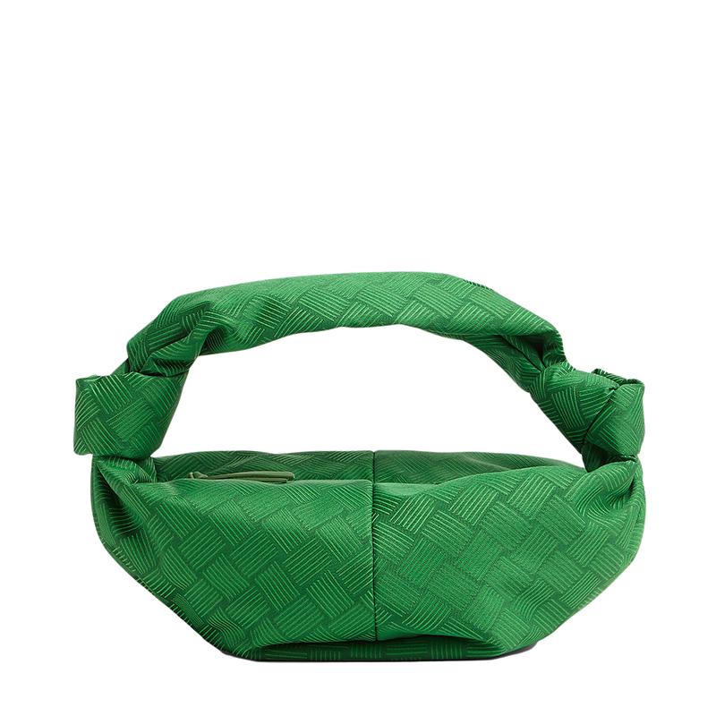 【包稅】Bottega Veneta/葆蝶家21新款DOUBLE KNOT系列女士鸚鵡綠色織物牛皮革拉鍊打結手提包658049V0T413711