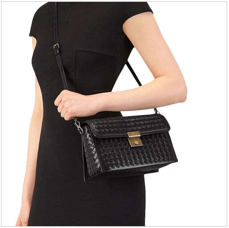首頁 > 箱包配飾 > 葆蝶家 > Bottega Veneta/葆蝶家INTRECCIATO系列女士黑色羊皮經典編織款時尚翻蓋小號單肩包斜挎包郵差包女包463700-AUQ3-1000