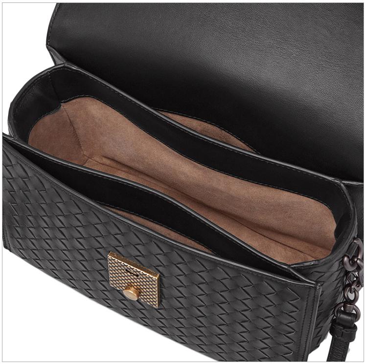 Bottega Veneta/葆蝶家 INTRECCIATO系列女士黑色羊皮经典编织款时尚翻盖小号单肩包斜挎包邮差包女包 463700-AUQ3-1000