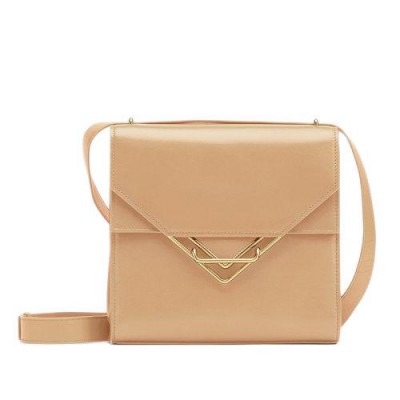 【包税】Bottega Veneta/葆蝶家 21春夏新款THE CLIP系列 女士杏仁色牛皮小羊皮翻盖三角形金属扣方形单肩斜挎包652391V0I422700