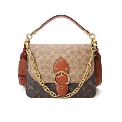 COACH/蔻馳BEAT口蓋包單肩包斜挎包馬車印花拼老花金扣C2418塗層帆布
