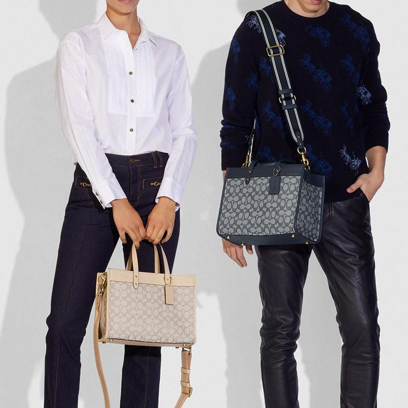 COACH/蔻馳FIELD TOTE包LOGO印花老花拼皮C3282織物牛皮革預售