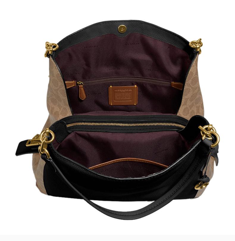 【包稅】COACH/蔻馳Dalton系列女士黑褐色粒面皮革手提包單肩包購物包女包76078B4OOH