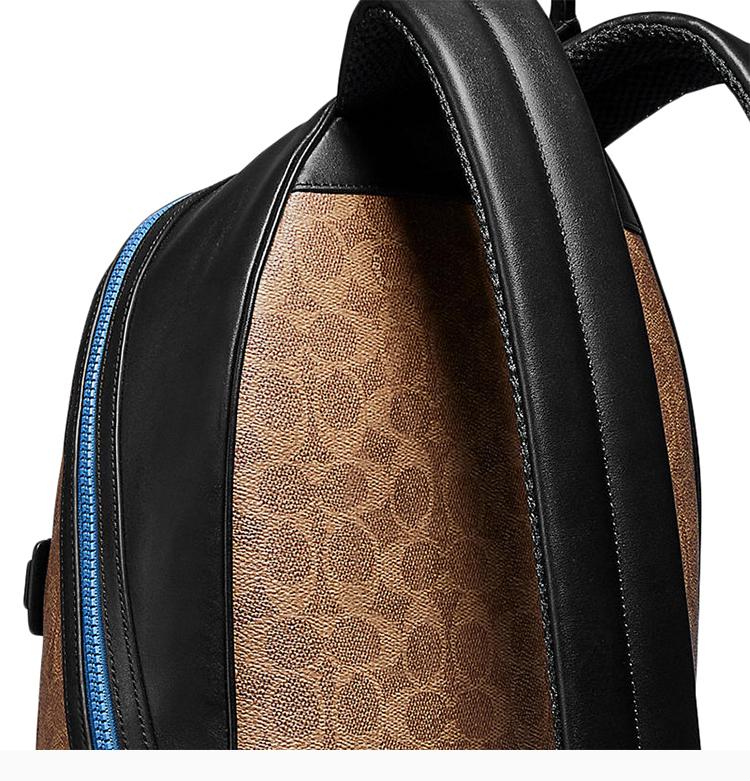 【國內現貨】COACH/蔻馳(專櫃)男士塗層帆布拼色老花印花圖案雙肩包背包旅行包