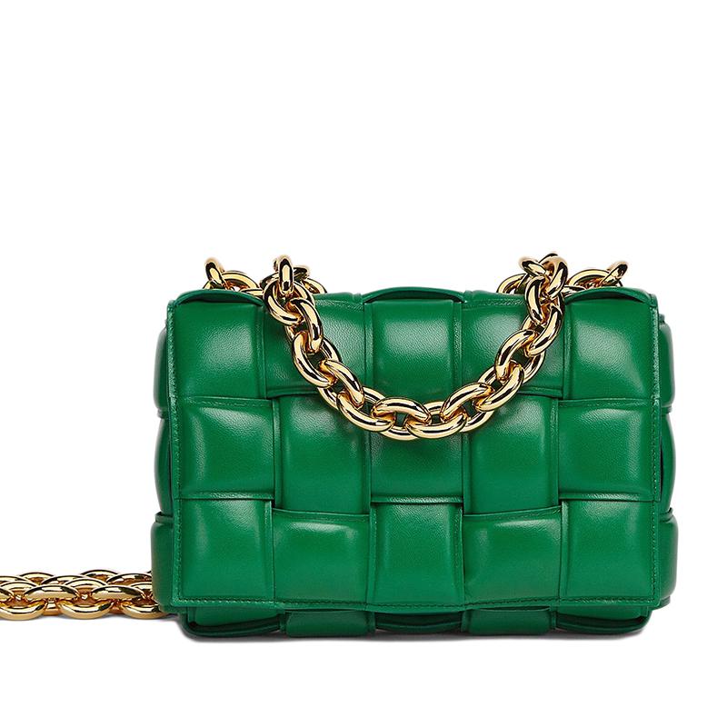 【包稅】Bottega Veneta/葆蝶家經典款CHAIN CASSETTE系列女士賽車綠色小羊皮編織鏈條單肩斜挎豆腐包631421VBWZ03104