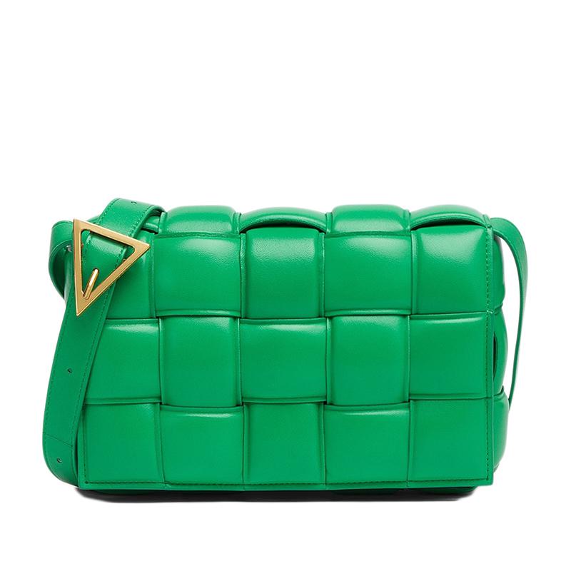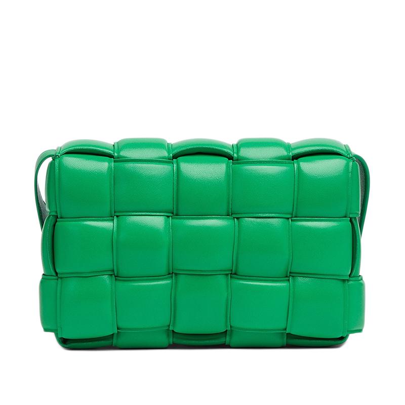 【包稅】Bottega Veneta/葆蝶家21春夏新款CASSETTE PADDED系列草綠色小羊皮雙面正交編織單肩豆腐包591970VCQR13714