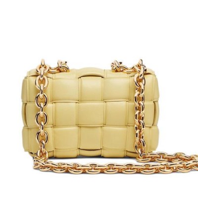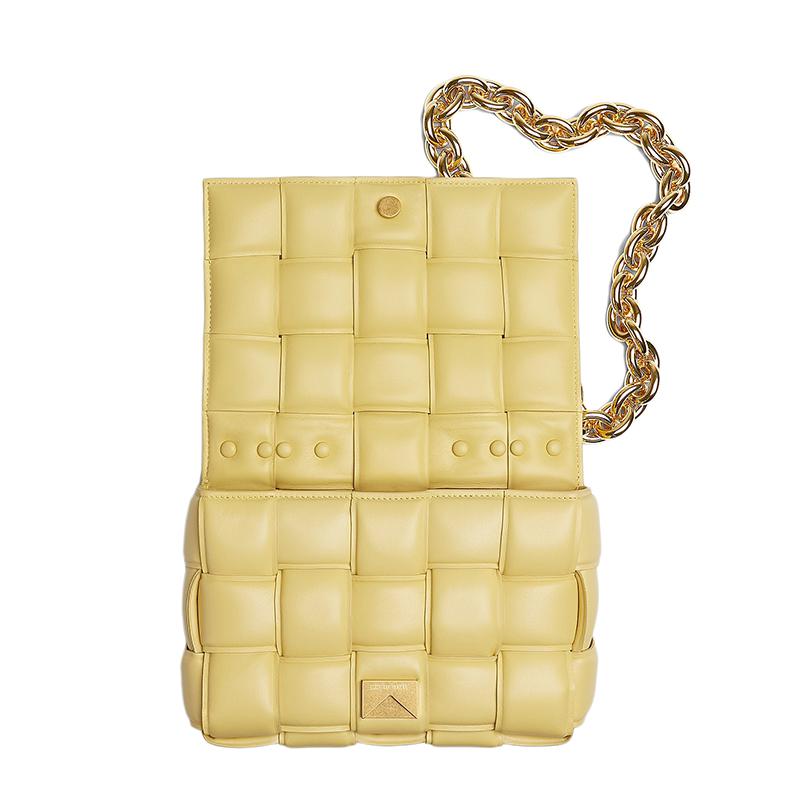 【包稅】Bottega Veneta/葆蝶家經典款CHAIN CASSETTE系列女士黃油色小羊皮編織鏈條單肩斜挎豆腐包631421VBWZ09316