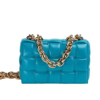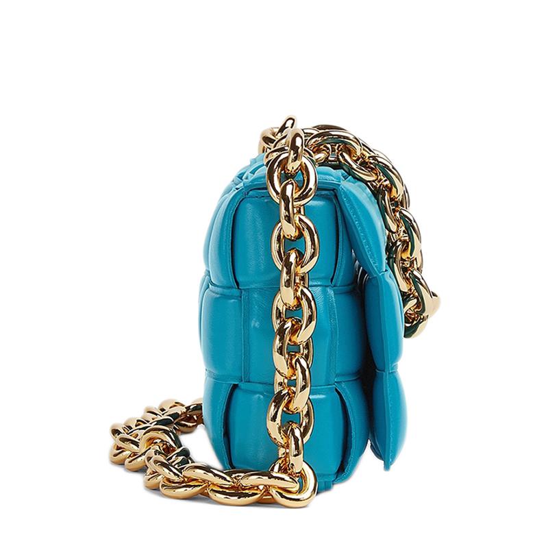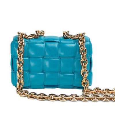 【包税】Bottega Veneta/葆蝶家 21新款CHAIN CASSETTE系列 女士野鸭绿小羊皮编织金链单肩斜挎豆腐包631421VBWZ03118