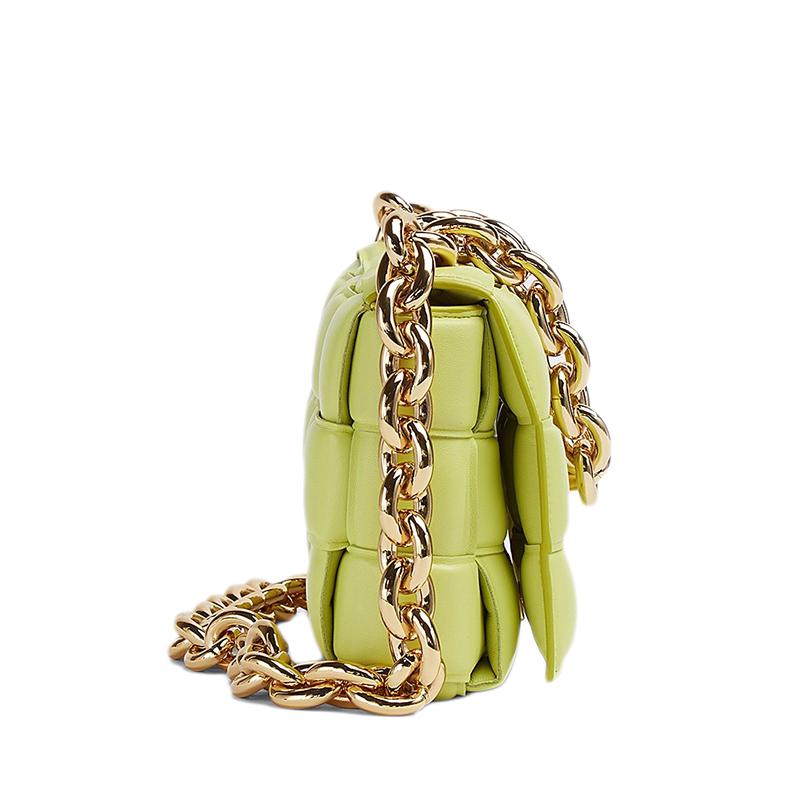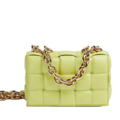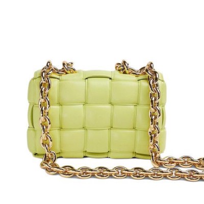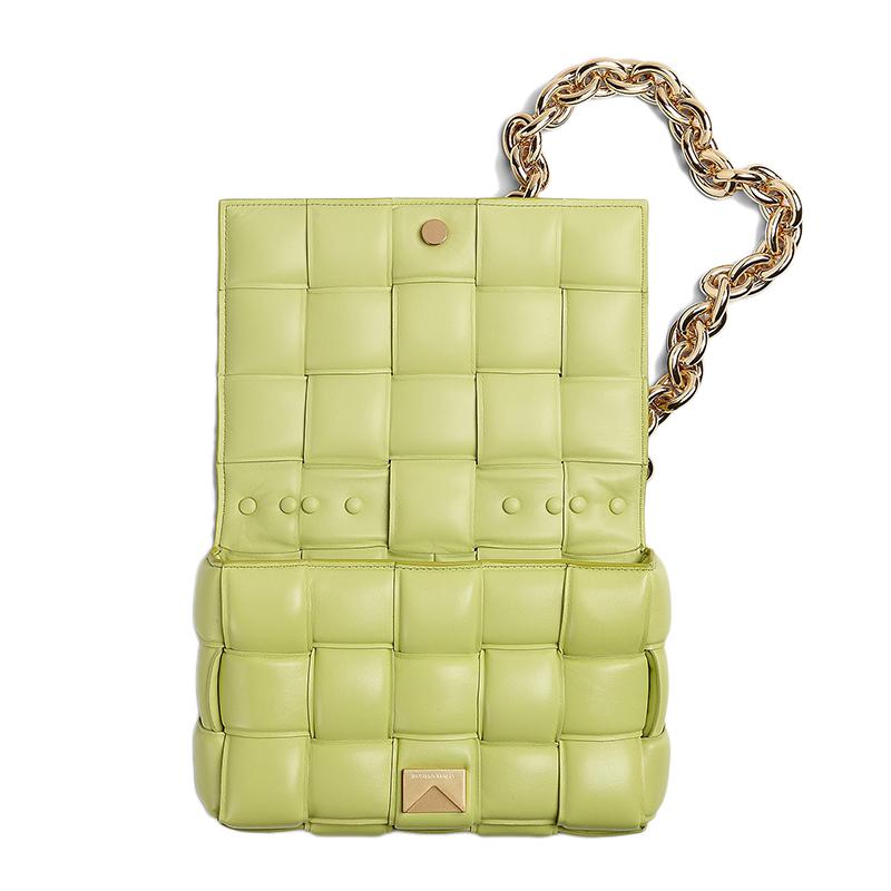 【包税】Bottega Veneta/葆蝶家 21新款CHAIN CASSETTE系列 女士海草色小羊皮编织金链单肩斜挎豆腐包631421VBWZ03453