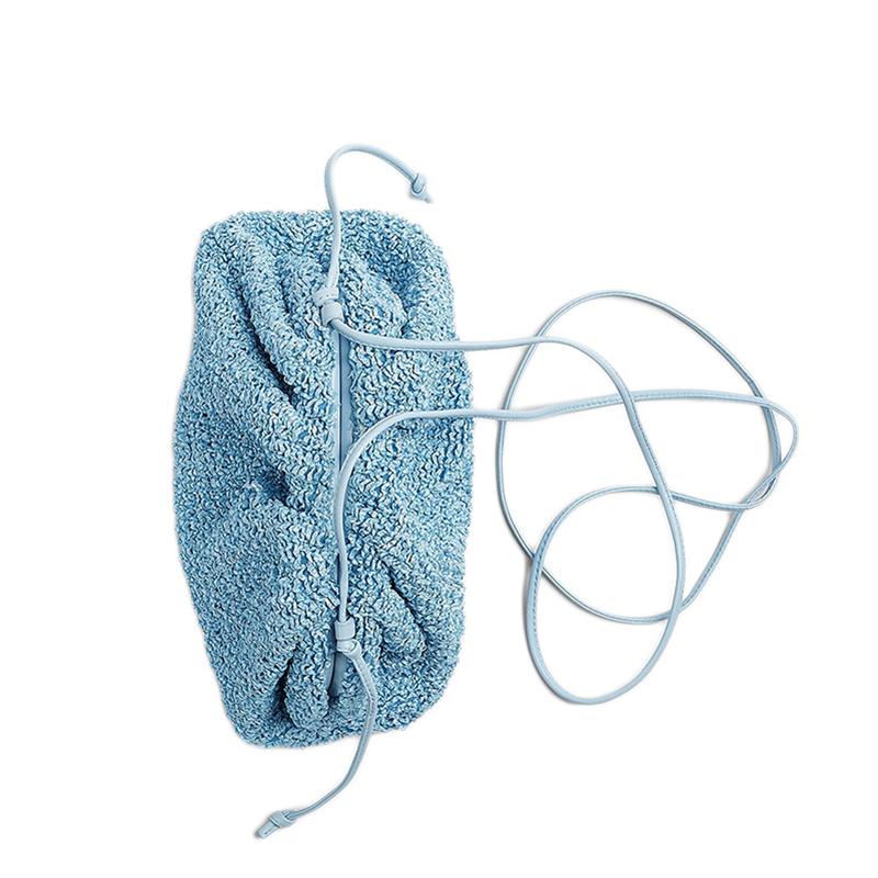 【包税】Bottega Veneta/葆蝶家 21春夏新款POUCH系列 女士迷你气泡蓝色小牛皮圈绒手拿斜挎云朵包585852V0SR14911