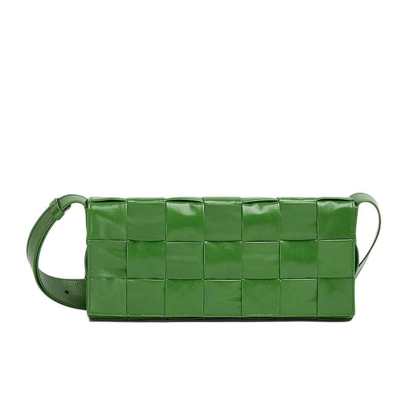 【包稅】Bottega Veneta/葆蝶家經典STRETCH CASSETTE系列男士草綠色小牛皮編織方形翻蓋斜挎包629068VCQ713754