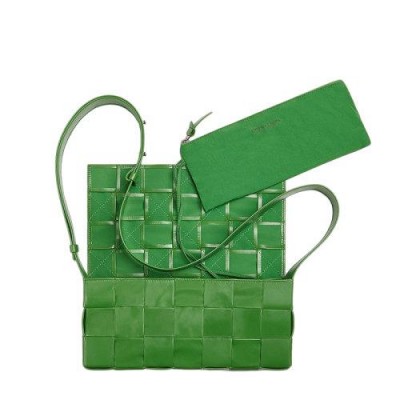 【包税】Bottega Veneta/葆蝶家 经典STRETCH CASSETTE系列 男士草绿色小牛皮编织方形翻盖斜挎包629068VCQ713754