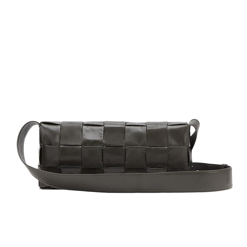 【包稅】Bottega Veneta/葆蝶家經典STRETCH CASSETTE系列男士原野綠色小牛皮編織方形翻蓋斜挎包629068VCQ713203