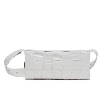 【包税】Bottega Veneta/葆蝶家 经典STRETCH CASSETTE系列 男士白色小牛皮编织方形翻盖斜挎包629068VCQ719005
