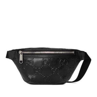 【包稅】GUCCI/古馳21新款GG embossé系列男女同款黑色雙G壓紋皮革斜挎包腰包6585821W3CN1000