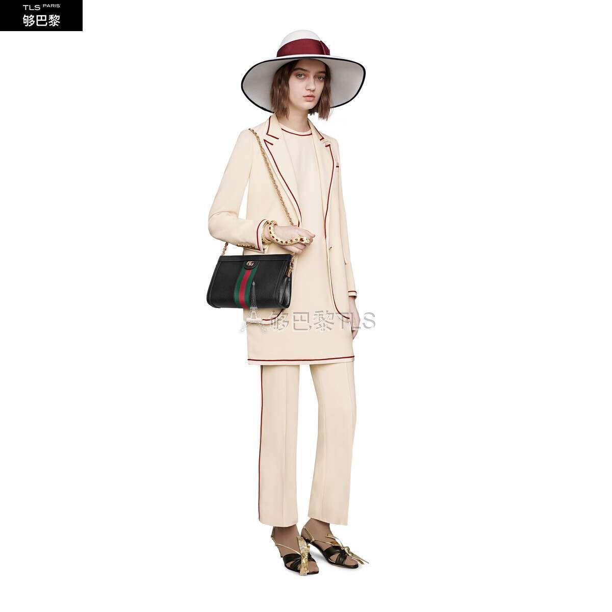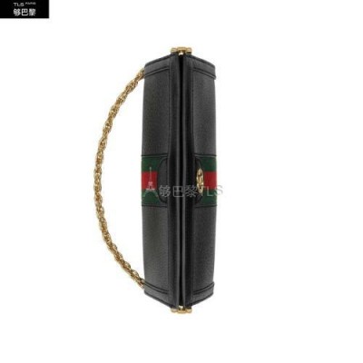 2019早秋系列再添力作,推出全新小号链式Ophidia系列肩背包,选用黑色皮革材质,搭配镶嵌的红绿条纹织带细节。新款设计的正面饰片上饰有小巧玲珑的双G细节,灵感源自70年代Gucci典藏腰带搭扣设计,经现代美学演绎后演化成高贵小巧的样式,打造备受青睐的造型。