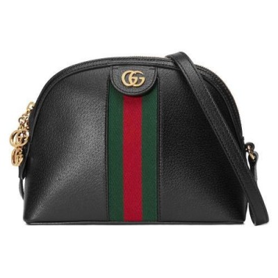 2019早秋系列再添力作,推出全新圆形Ophidia系列肩背包,选用黑色皮革材质,搭配镶嵌的红绿条纹织带细节。新款设计的正面饰片和拉链头上饰有小巧玲珑的双G细节,灵感源自70年代Gucci典藏腰带搭扣设计,经现代美学演绎后演化成高贵小巧的样式,打造备受青睐的造型。