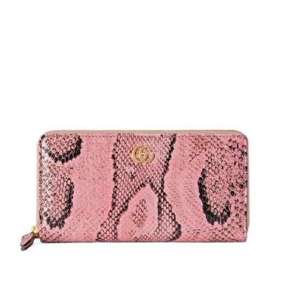 【包税】GUCCI/古驰 2021春夏新款 GG Marmont系列 女士粉色蟒蛇皮双G拉链长钱包456117LU3XG5815