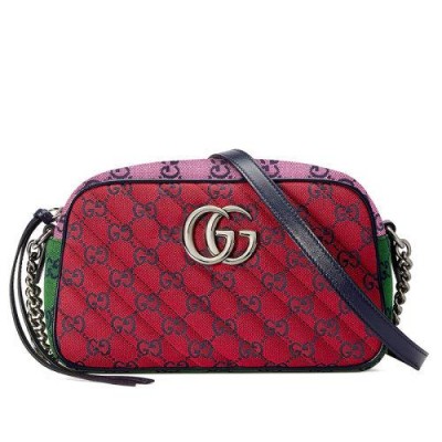 【包税】GUCCI/古驰 2021春夏新款 GG Marmont‎系列 小号女士多色GG帆布拉链银色饰面双G徽标斜挎单肩手提包4476322UZIN6061
