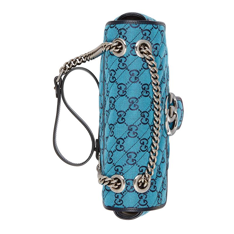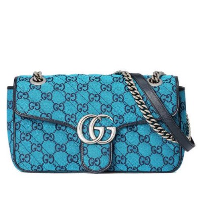 【包稅】GUCCI/古馳2021春夏新款GG Marmont‎系列小號女士淺藍色和藍色GG帆布銀色飾面雙G扣斜挎單肩手提包4434972UZCN4164
